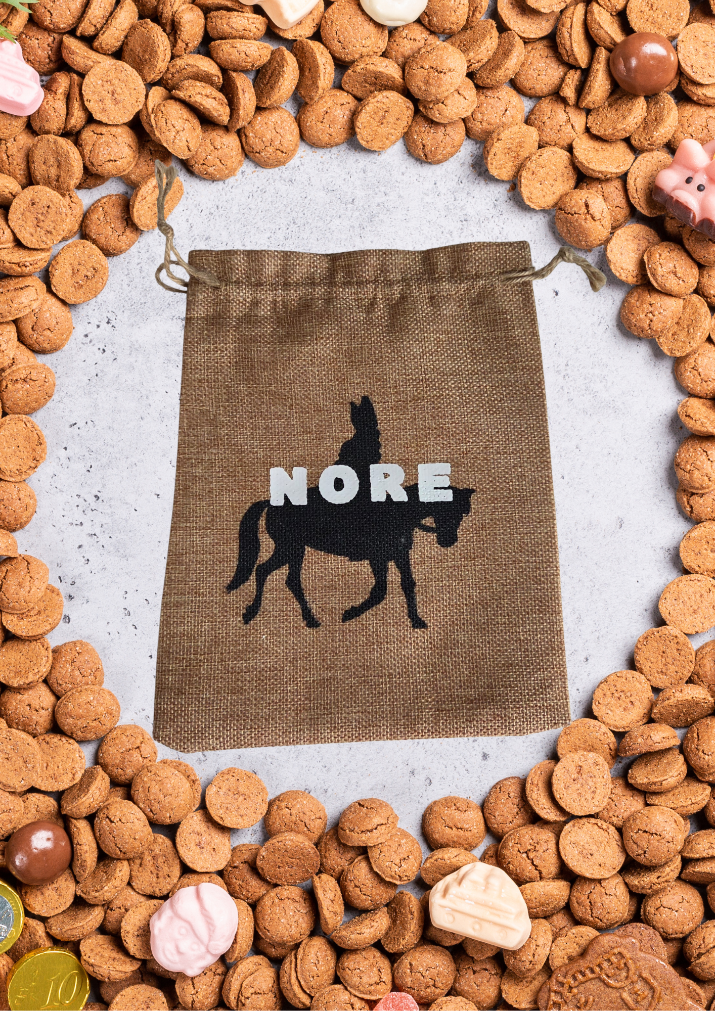Laat de Sint al het lekkers bezorgen in een zakje dat speciaal voor jouw kapoen gemaakt is — met zijn of haar naam erop, gedrukt met liefde in onze studio.