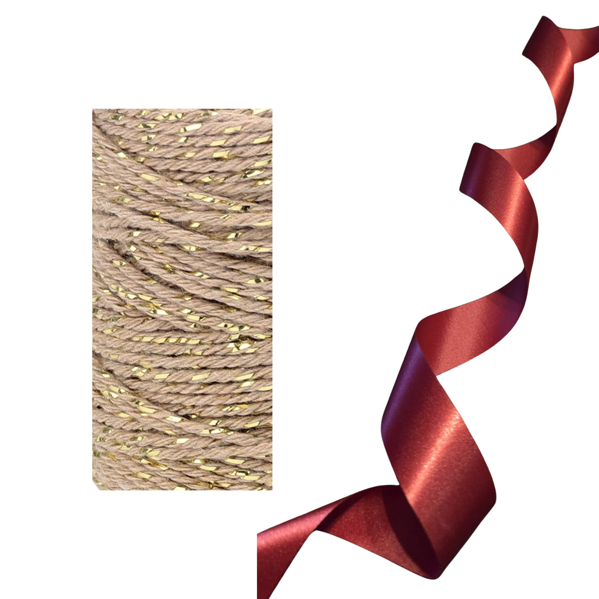 ✨ 15 meter katoenen touw met een sprankelend stukje goud erin — perfect om je cadeaus een schitterende kersttouch te geven.