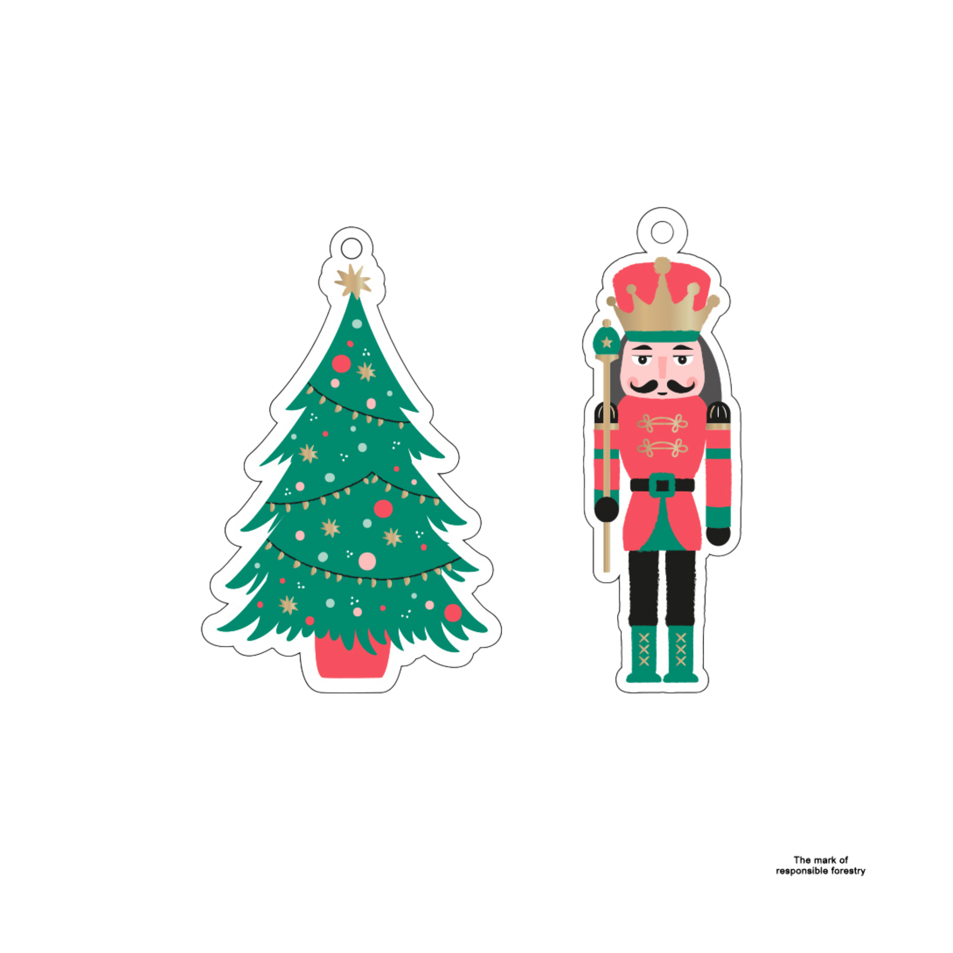 ✨ 5 gezellige kerstlabels in een kerstboom en notenkraker ontwerp, klaar om elk cadeau extra feestelijk te maken. (deze worden als verrassingsmix toegevoegd)